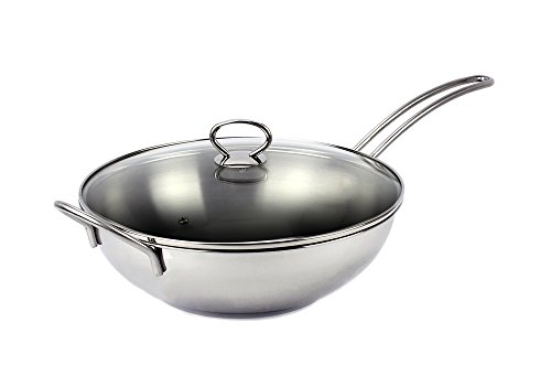 The Cooks Standard 12" Multi-Ply clad stainless steel wok stir fry pan with glass lid, 30cm is made of 2 layers of 18/10 stainless steel and an aluminum core along base and walls. Multi-ply allows for heat to be distributed evenly and quickly. Stainless steel polished exterior and interior looks great and is easy to clean. ... Doc Retrieval